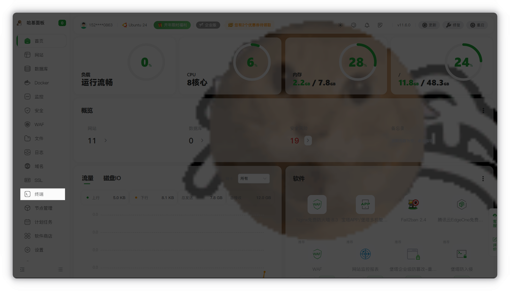 宝塔面板(可选,只是图形化操作方便,之后的教程不会展示纯手动命令行)
