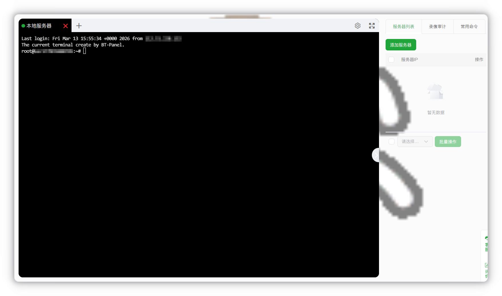 docker run -it -d --name halo -p 8090:8090 -v ~/.halo2:/root/.halo2 -e JVM_OPTS="-Xmx256m -Xms256m" registry.fit2cloud.com/halo/halo-pro:2.23复制完之后,打开宝塔面板,在侧边栏找到 终端(或其他 ssh 终端工具)