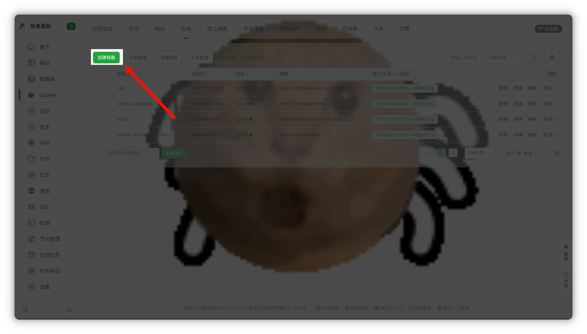 点进去之后,点击 创建容器。