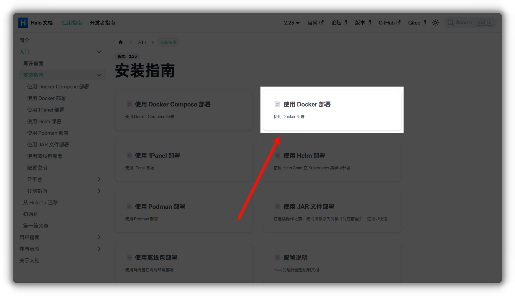 进入之后找到 使用 Docker 部署
